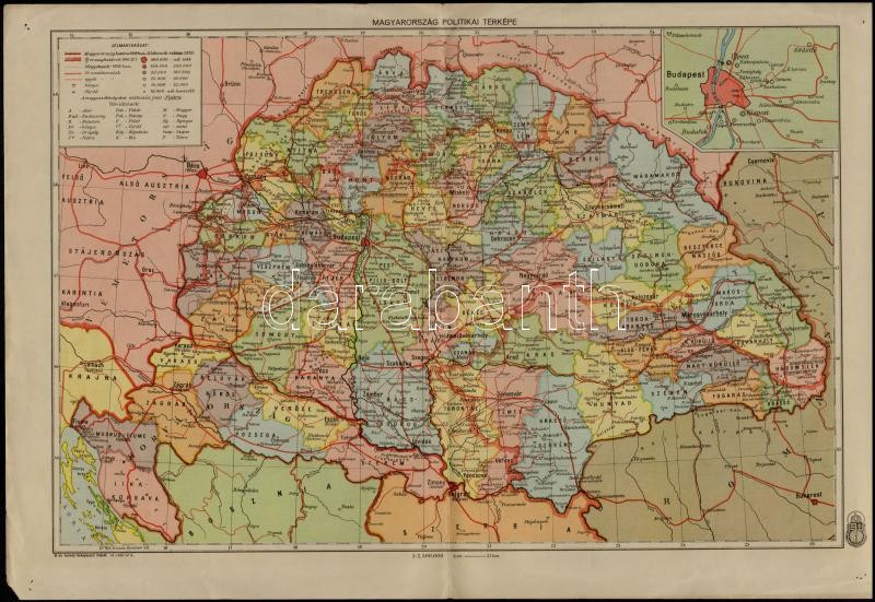 1942 Magyarország politikai térképe és Magyarország hegy- és vízrajzi térképe, kétoldalas térkép, kiadja: M. kir. Honvéd Térképészeti Intézet, 29×43 cm