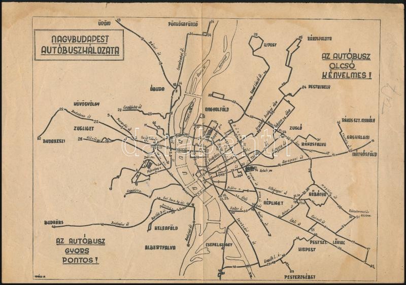 1949 Nagybudapest autóbuszhálózata, térkép, menetrenddel, szakadással,... https://www.darabanth.com/de/346-Fernauktion/346.0/Kunst-Dokumente-andere-Sammelgebiete/Landkarten~500028/1949-Nagybudapest-autobuszhalozata-terkep-menetrenddel-szakadassal-21C39729-cm~II1963703
