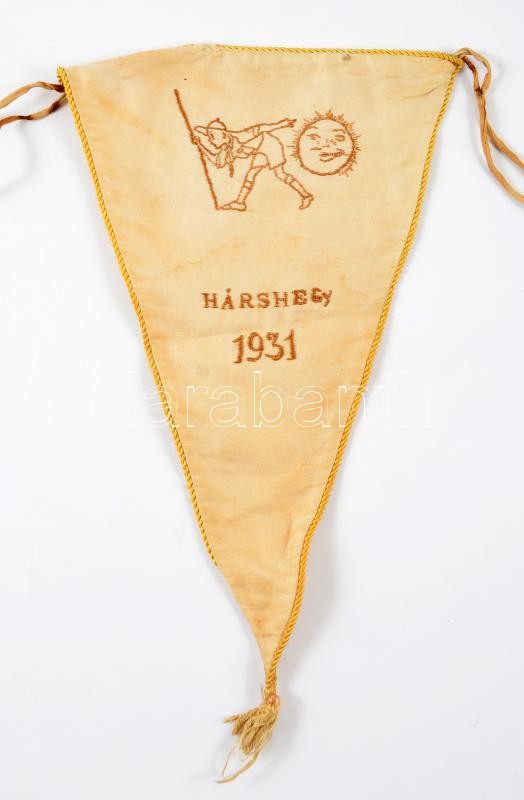 1931 Hárshegyi cserkésztábor zászlója. 30x18 cm https://www.darabanth.com/de/346-Fernauktion/346.0/Kunst-Dokumente-andere-Sammelgebiete/Pfadfinder~500025/1931-Harshegyi-cserkesztabor-zaszloja-30x18-cm~II1965188