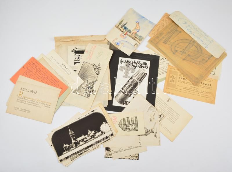 Beschreibung: 1933 Cserkész gyűjtemény: Gödöllő Jamboree Budapest Hungária feliratú szövet mappa, benne számos cserkész meghívóval, cserkész témájú reklámmal, rajzzal, nyomattal