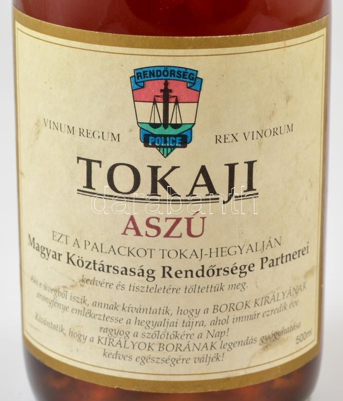 Tokaji aszú bontatlan palack bor 0,5 L, külön a rendőrségnek készített... https://www.darabanth.com/de/346-Fernauktion/346.0/Kunst-Dokumente-andere-Sammelgebiete/Vintage-Weine-Getranke~500014/Tokaji-aszu-bontatlan-palack-bor-0-5-L-kulon-a-rendorsegnek-keszitett-cimkevel~II1961560