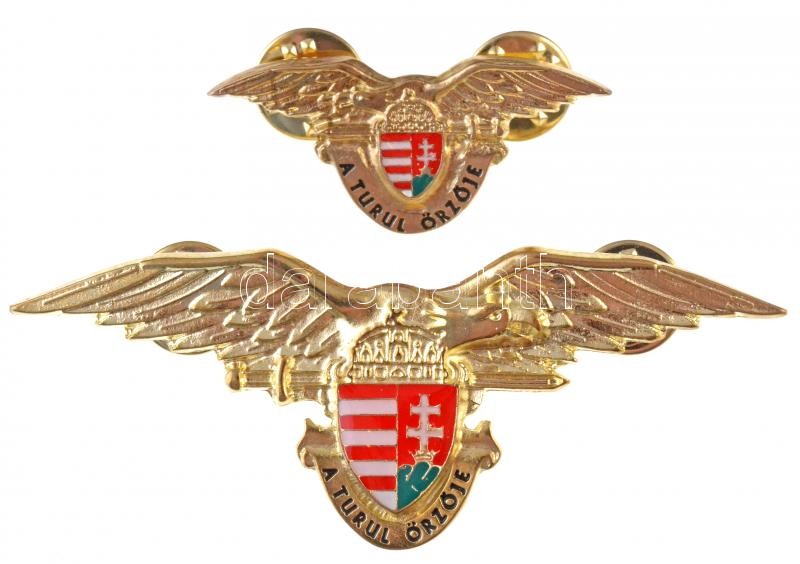 Beschreibung: DN "A Turul Őrzője" aranyozott, zománcozott jelvény (2x) klf méretben (30x76mm és 17x41mm) T:1-