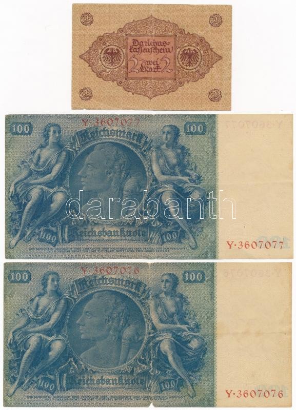 Németország / Weimari Köztársaság 1920. 2M + Német Harmadik Birodalom 1935. 100M (2x) sorszámkövetők T:III kis szakadás