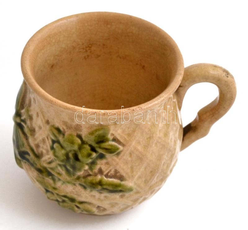 Antik bögre plasztikus levél mintával, kézzel festett mázas kerámia, m... https://www.darabanth.com/de/346-Fernauktion/346.0/Porzellan-Keramik-Glass/Keramiken~500006/Antik-bogre-plasztikus-level-mintaval-kezzel-festett-mazas-keramia-m-8-5-cm~II1967135