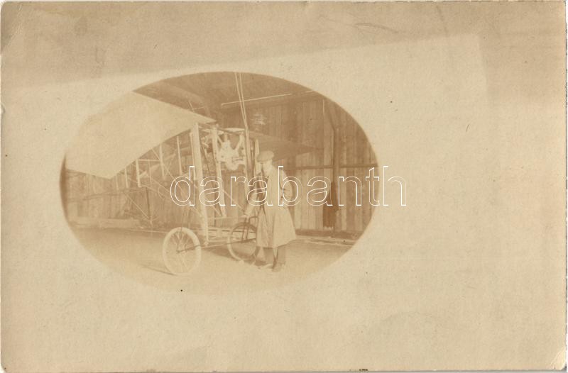 ~1905 Vintage repülőgép hangárban pilótával / Vintage aircraft with pi... https://www.darabanth.com/de/347-Fernauktion/347.0/Ansichtskarten/Flugwesen~2500059/7E1905-Vintage-repulogep-hangarban-pilotaval-Vintage-aircraft-with-pilot-photo~II1972475