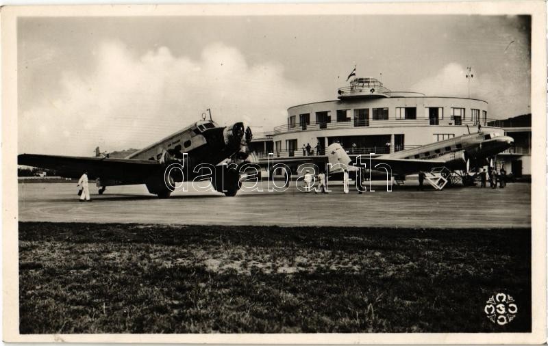 Budaörs, Közforgalmi repülőtér, Air France francia és KLM holland repü... https://www.darabanth.com/de/347-Fernauktion/347.0/Ansichtskarten/Flugwesen~2500059/Budaors-Kozforgalmi-repuloter-Air-France-francia-es-KLM-holland-repulogepekkel-Airport-~II1973052