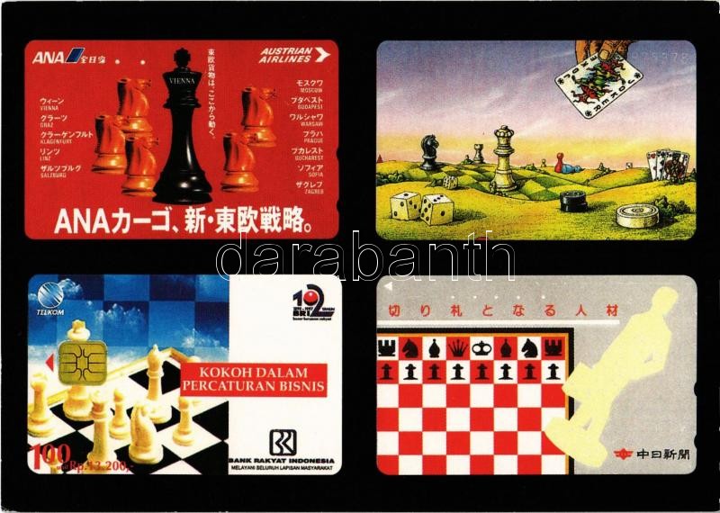 Beschreibung: Sakk motívumú telefonykártyák / Frank Helm's collection of phonecards with chess motives from all over the world - MODERN postcard