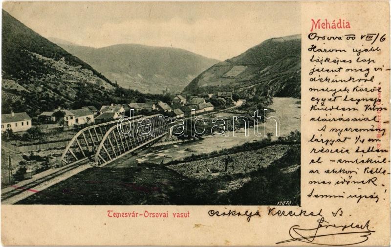 1900 Mehádia, Mehadia; Temesvár-Orsovai vasútvonal vasúti híddal / rai... https://www.darabanth.com/de/347-Fernauktion/347.0/Ansichtskarten/Siebenburgen~2500006/1900-Mehadia-Mehadia-Temesvar-Orsovai-vasutvonal-vasuti-hiddal-railway-bridge-of-the-Timiso~II1971635