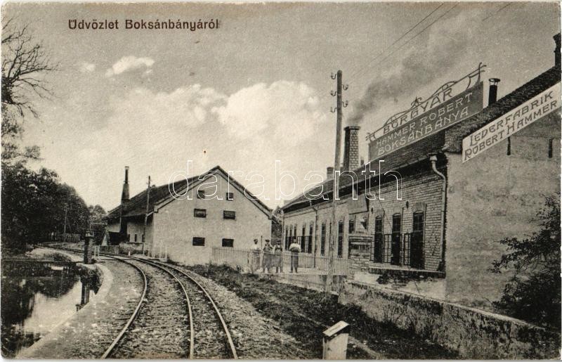 Boksánbánya, Németbogsán, Bocsa; Hammer Róbert bőrgyára, sínek. Szabon... https://www.darabanth.com/de/347-Fernauktion/347.0/Ansichtskarten/Siebenburgen~2500006/Boksanbanya-Nemetbogsan-Bocsa-Hammer-Robert-borgyara-sinek-Szabonary-Karoly-fenykep~II1971432