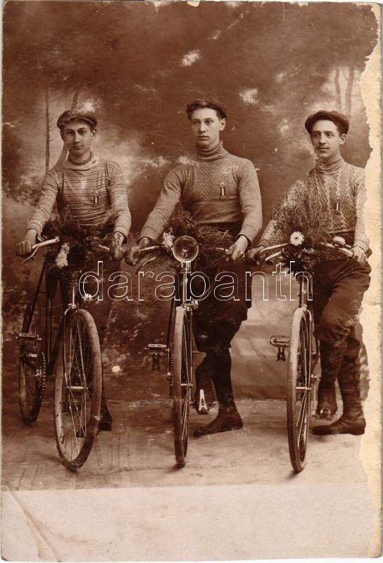 Beschreibung: Szászváros, Broos, Orastie; kerékpáros verseny győztesei. Adler fényirda / winners of cycling competition. photo (felszíni sérülés / surface damage)