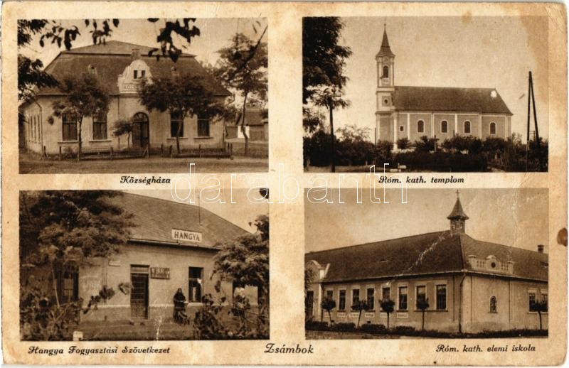 1943 Zsámbok, Községháza, Római katolikus templom és elemi iskola, Han... https://www.darabanth.com/de/347-Fernauktion/347.0/Ansichtskarten/Ungarn~2500005/1943-Zsambok-Kozseghaza-Romai-katolikus-templom-es-elemi-iskola-Hangya-fogyasztasi-szovet~II1968211