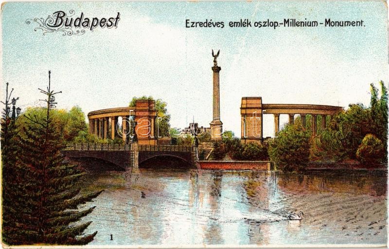 Budapest XIV. Ezredéves emlékoszlop, litho https://www.darabanth.com/de/347-Fernauktion/347.0/Ansichtskarten/Ungarn~2500005/Budapest-XIV-Ezredeves-emlekoszlop-litho~II1970659