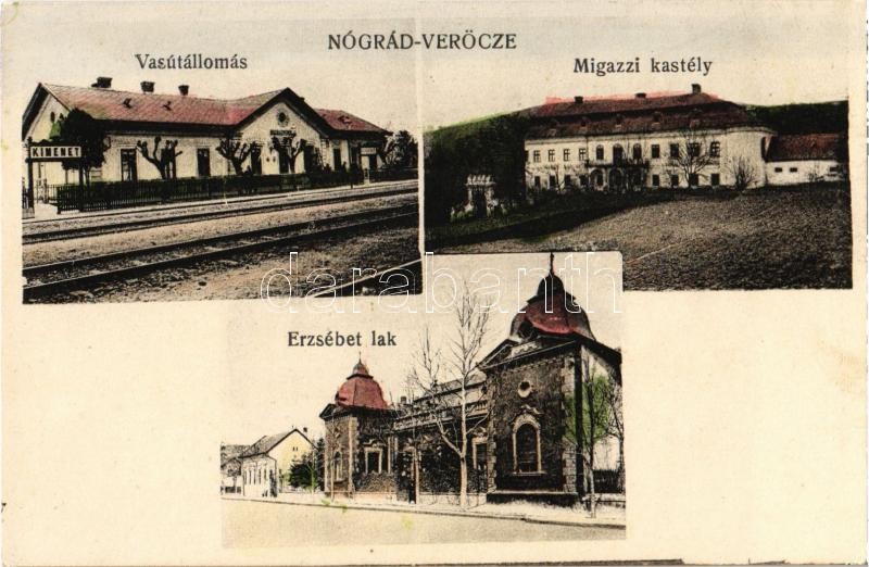 Beschreibung: Verőce, Nógrádverőce; vasútállomás, Migazzi kastély, Erzsébet lak. Still Endre kiadása