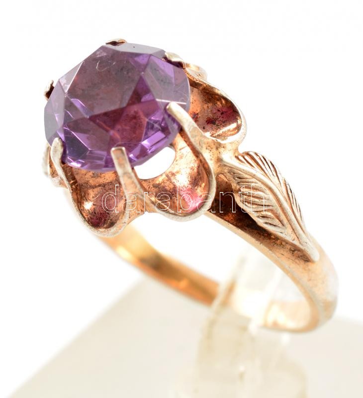 Beschreibung: Ezüst(Ag) gyűrű, ametiszttel, jelzett, méret: 52, bruttó: 3,7 g