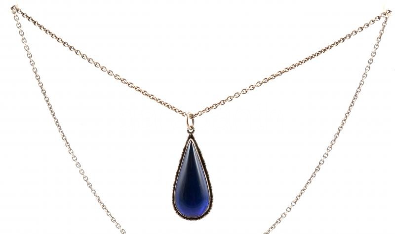 Beschreibung: Ezüst(Ag) lánc, üveggel díszített medállal, jelzett, h: 38 cm, 3×1,2 cm, bruttó: 6,2 g