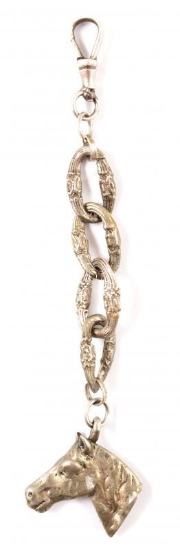 Beschreibung: Ezüst(Ag) tiszti lánc, jelzett, h: 9 cm, alpakka lófejjel, bruttó: 23,6 g