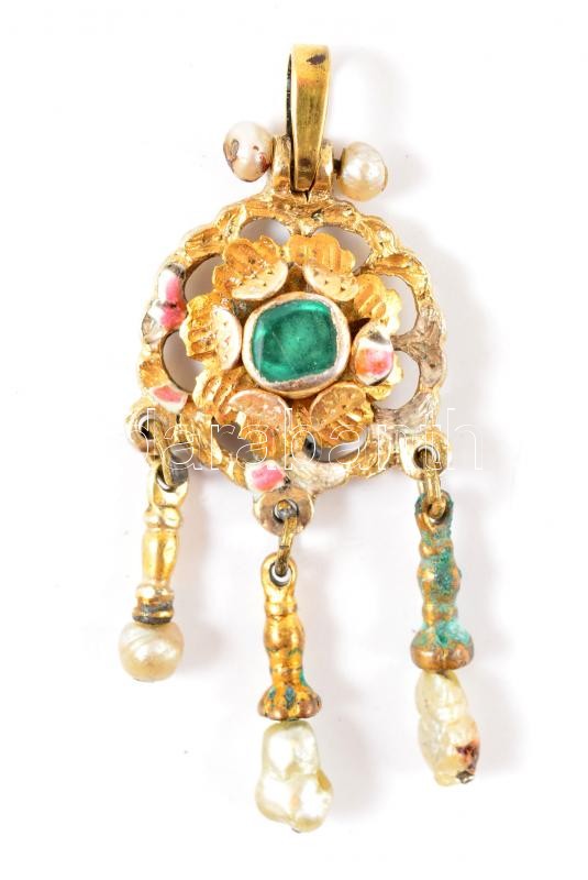 Aranyozott ezüst(Ag) függő, réz csüngőkkel, kövekkel díszítve, h: 4,5 ... https://www.darabanth.com/de/347-Fernauktion/347.0/Kunst-Dokumente-andere-Sammelgebiete/Antik~500004/Aranyozott-ezustAg-fuggo-rez-csungokkel-kovekkel-diszitve-h-4-5-cm~II1969175