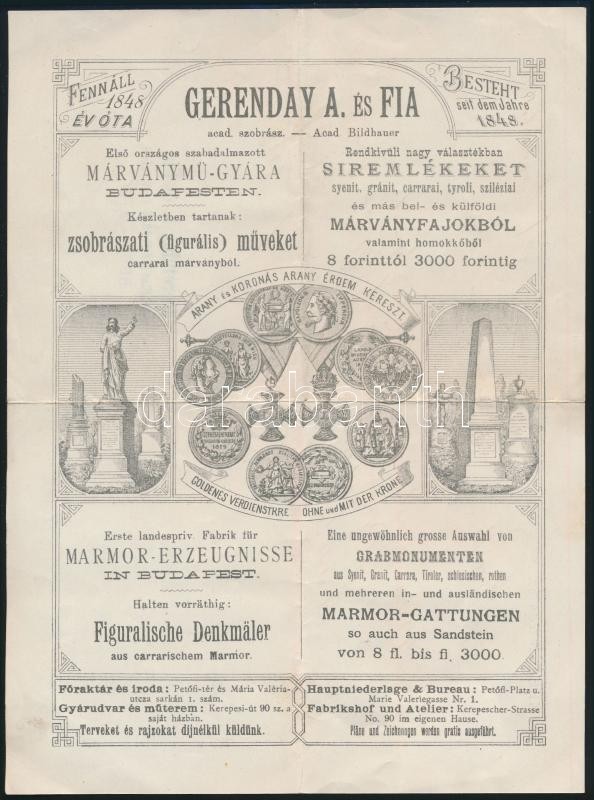 1896 Bp., Gerenday A. és Fia akadémiai szobrász díszes számlája, okmán... https://www.darabanth.com/de/347-Fernauktion/347.0/Kunst-Dokumente-andere-Sammelgebiete/Dokument~500017/1896-Bp-Gerenday-A-es-Fia-akademiai-szobrasz-diszes-szamlaja-okmanybelyeggel-hajtogatva~II1972654