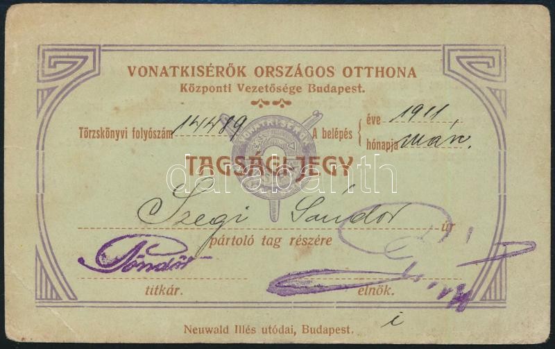 1911 Vonatkísérők Országos Otthona kitöltött tagsági jegye https://www.darabanth.com/de/347-Fernauktion/347.0/Kunst-Dokumente-andere-Sammelgebiete/Dokument~500017/1911-Vonatkiserok-Orszagos-Otthona-kitoltott-tagsagi-jegye~II1969487