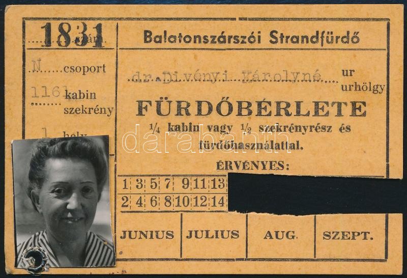 A balatonszárszói strandfürdőre szóló fényképes fürdőbérlet https://www.darabanth.com/de/347-Fernauktion/347.0/Kunst-Dokumente-andere-Sammelgebiete/Dokument~500017/A-balatonszarszoi-strandfurdore-szolo-fenykepes-furdoberlet~II1969493