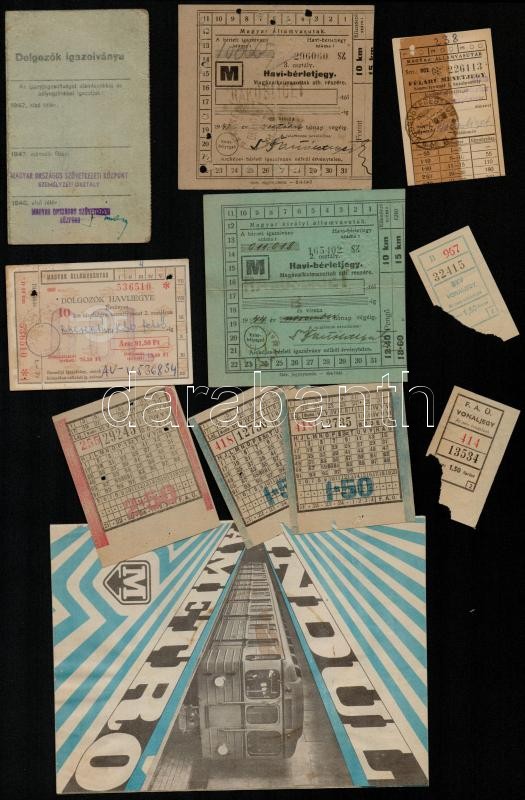cca 1944-1970 9 db fővárosi és vasúti menetjegy, és havi bérletjegy, B... https://www.darabanth.com/de/347-Fernauktion/347.0/Kunst-Dokumente-andere-Sammelgebiete/Dokument~500017/cca-1944-1970-9-db-fovarosi-es-vasuti-menetjegy-es-havi-berletjegy-BSzKRt-dolgozoi-igazolv~II1973747