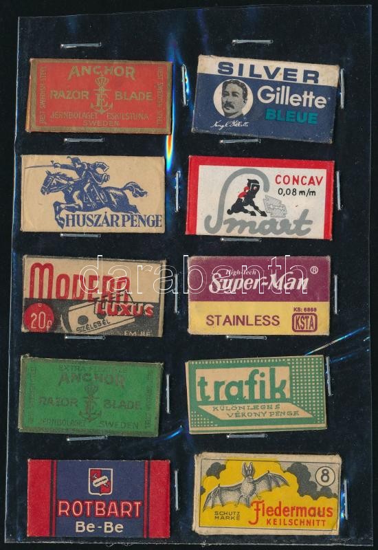 10 db retró borotva pengék, bontatlan https://www.darabanth.com/de/347-Fernauktion/347.0/Kunst-Dokumente-andere-Sammelgebiete/Flohmarkt~500011/10-db-retro-borotva-pengek-bontatlan~II1969976