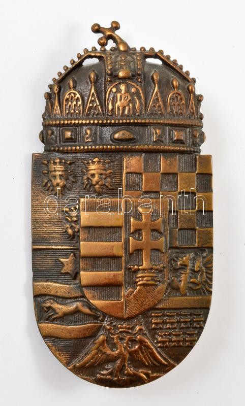 Bronz koronás középcímer, jelzett, 17×8 cm https://www.darabanth.com/de/347-Fernauktion/347.0/Kunst-Dokumente-andere-Sammelgebiete/Flohmarkt~500011/Bronz-koronas-kozepcimer-jelzett-17C3978-cm~II1969934