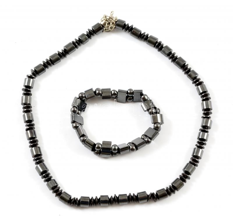Beschreibung: Magnetit nyaklánc és karkötő, h: 45 cm