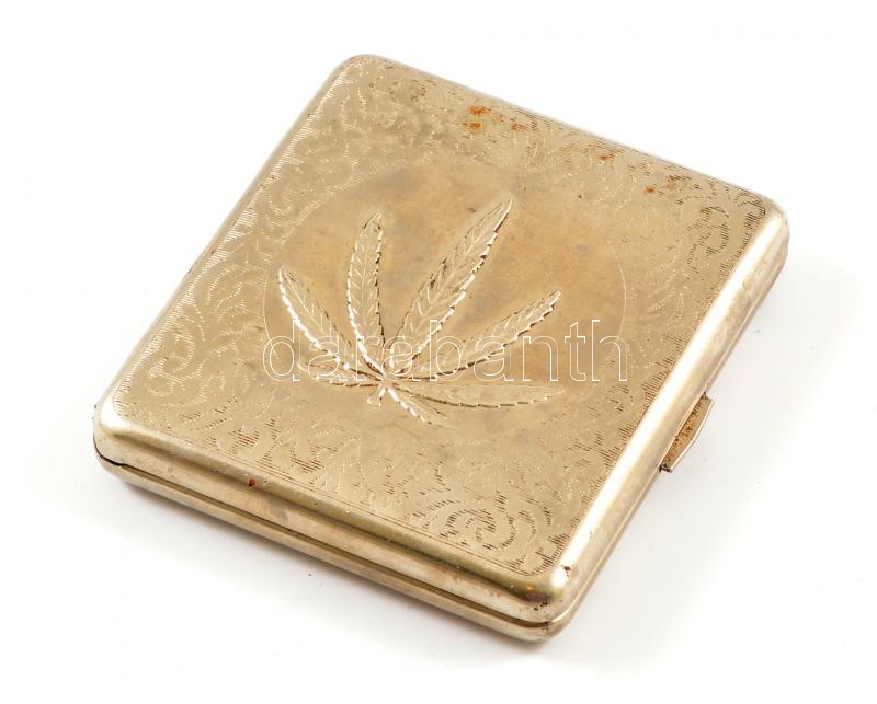 Marihuána leveles fém cigarettatárca, 9×8 cm https://www.darabanth.com/de/347-Fernauktion/347.0/Kunst-Dokumente-andere-Sammelgebiete/Flohmarkt~500011/Marihuana-leveles-fem-cigarettatarca-9C3978-cm~II1969163