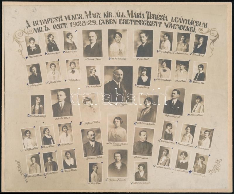 1929 Budapest, Mária Terézia Leányliceum tanárai és végzett hallgatói,... https://www.darabanth.com/de/347-Fernauktion/347.0/Kunst-Dokumente-andere-Sammelgebiete/Foto~500020/1929-Budapest-Maria-Terezia-Leanyliceum-tanarai-es-vegzett-hallgatoi-kistablo-nevesitett-~II1968392