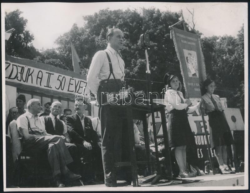 Beschreibung: 1947 A Magyar Vegyipari Szakszervezet 50 éves jubileumi ünnepsége, fotó, 18×23,5 cm