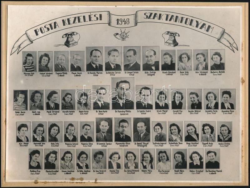 1948 Posta kezelési Szaktanfolyam tanárai és végzett hallgatói, kistab... https://www.darabanth.com/de/347-Fernauktion/347.0/Kunst-Dokumente-andere-Sammelgebiete/Foto~500020/1948-Posta-kezelesi-Szaktanfolyam-tanarai-es-vegzett-hallgatoi-kistablo-nevesitett-portrekk~II1968405