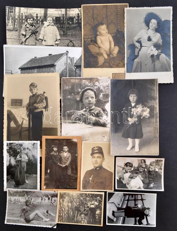 Beschreibung: cca 1900-1960 Vegyes fotó tétel, 16 db, közte két nagyméretű portréfotó kartonon, változó állapotban, 20x15 cm és 5x8 cm közötti méretben