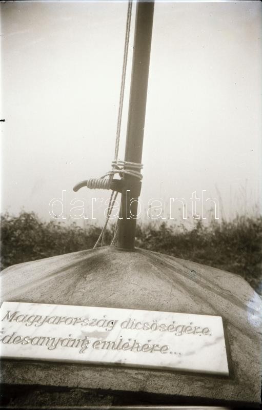 Beschreibung: cca 1930 "Magyarország dicsőségére, édesanyánk emlékére..." - országzászló és talapzata, 2 db fotónegatív, 9×6 cm