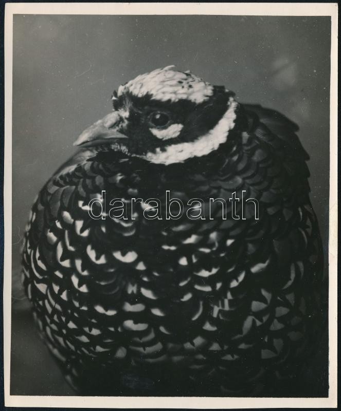 cca 1932 Kinszki Imre (1901-1945) budapesti fotóművész hagyatékából, aláírt és pecséttel jelzett, vintage fotóművészeti alkotás (Királyfácán arcképe), 15,5x12,5 cm