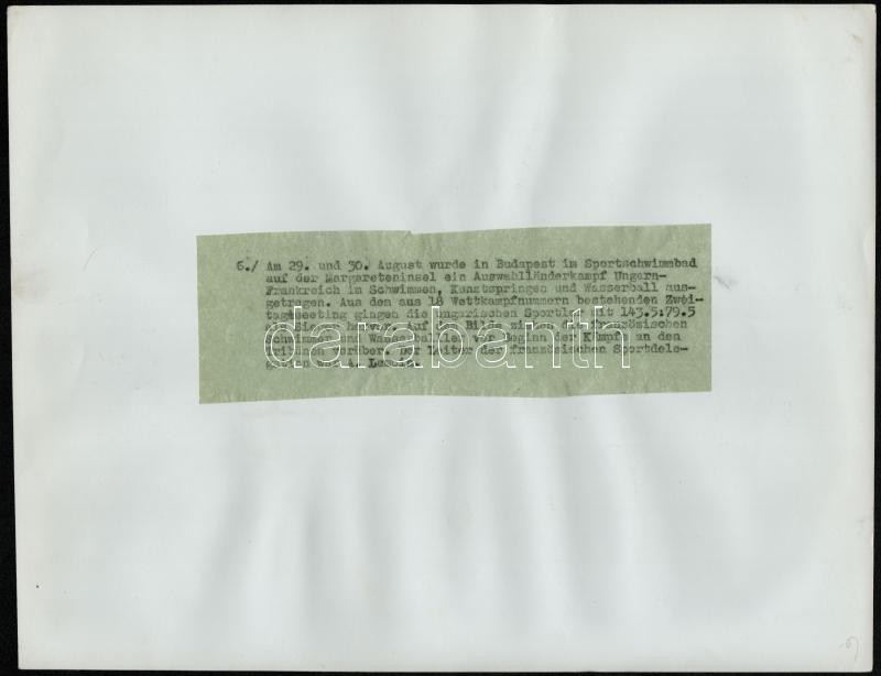 cca 1950-1960 Vízilabda és úszósport fotók, 6 db, többnyire feliratozv... https://www.darabanth.com/de/347-Fernauktion/347.0/Kunst-Dokumente-andere-Sammelgebiete/Foto~500020/cca-1950-1960-Vizilabda-es-uszosport-fotok-6-db-tobbnyire-feliratozva-9C39712-es-24C39731-cm-k~II1971757