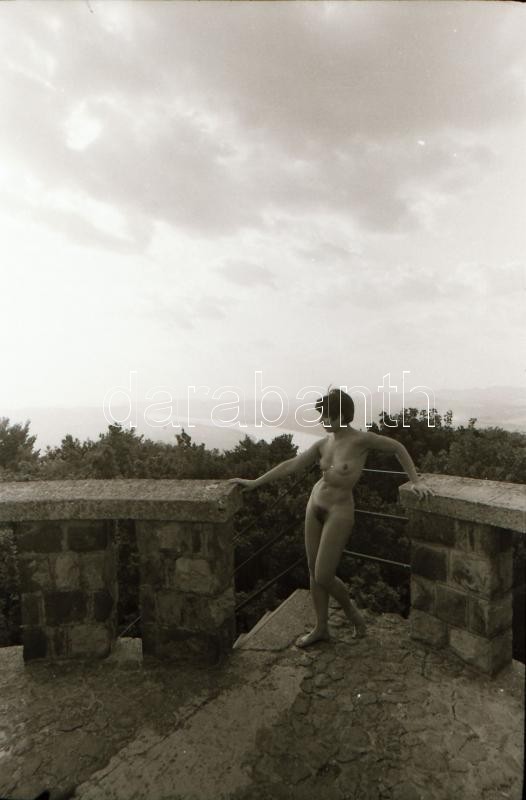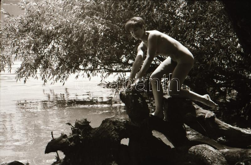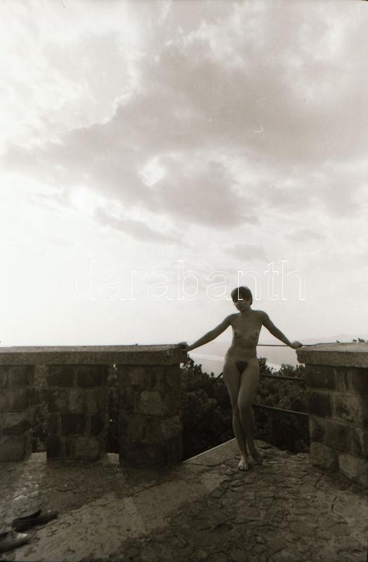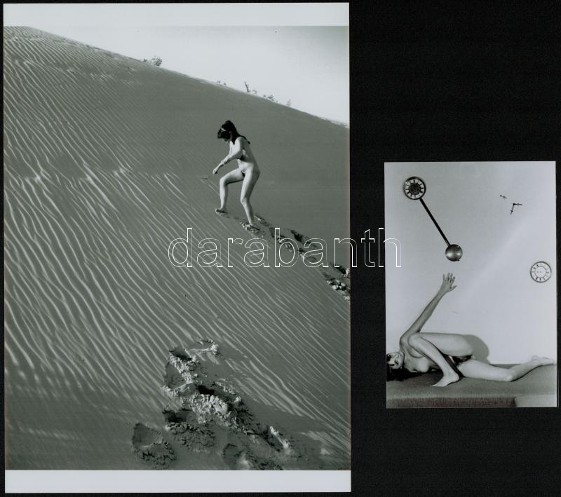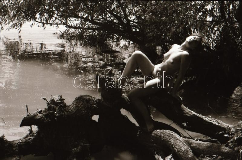 cca 1974 Múlt a jelenben, szolidan erotikus felvételek, 13 db vintage negatív + 2 db mai nagyítás, a papírképek nem a tételben levő negatívokról készültek, 24x36 mm és 25x18 cm között
