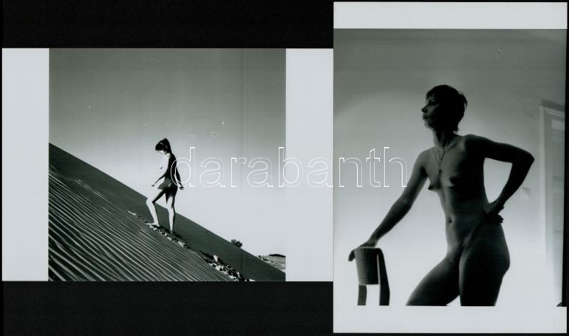 cca 1976 Szép emlékű találkozások, szolidan erotikus felvételek, 13 db vintage negatív + 2 db mai nagyítás, a papírképek nem a tételben levő negatívokról készültek, 24x36 mm és 25x18 cm között