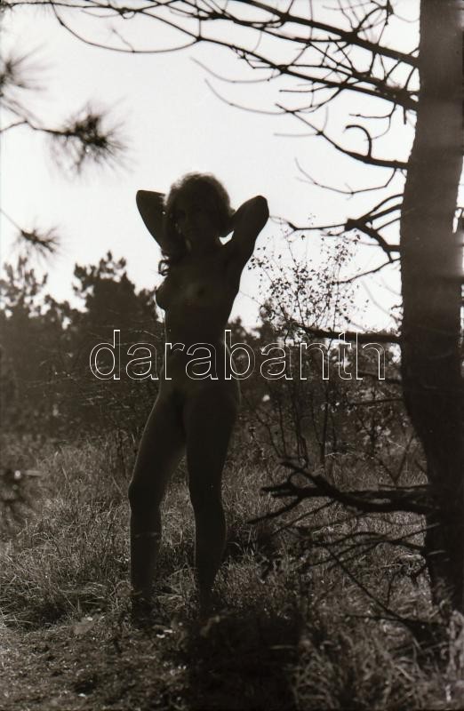 cca 1983 A természet szeretete, szolidan erotikus felvételek, 13 db vintage negatív + 1 db mai nagyítás, a papírkép nem a tételben levő negatívokról készült, 24x36 mm és 25x18 cm között