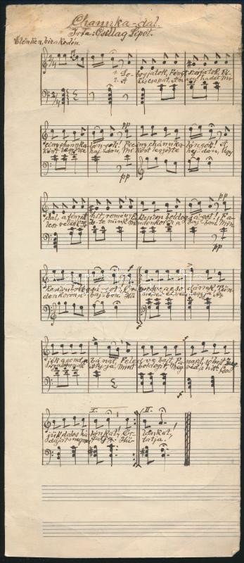 1944 Csillag Lipót kántortanító Chanuka-dal kottája a vészkorszakból, "... kis csapat a nagy hadat miként legyőzte hajdan, úgy lesz velünk jó Istenünk mindenkoron a bajban..."