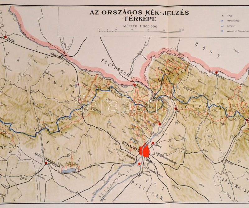 1938 Az országos kék túrajelzés térképe 90x31 cm https://www.darabanth.com/de/347-Fernauktion/347.0/Kunst-Dokumente-andere-Sammelgebiete/Landkarten~500029/1938-Az-orszagos-kek-turajelzes-terkepe-90x31-cm~II1972449