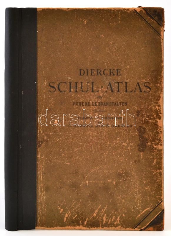 Diercke Schulatlas für höhere Lehranstalten. Bearbeitet und Herausgegeben: - - und E. Gaebler. Braunschweig, 1909, George Westermann, VI p.+156 t. Német nyelven. Javított gerincű félvászon-kötésben, kopott borítóval, javított gerinccel és kötéssel, az első három lap (I-VI) szakadt, két térkép kijár, szakadt (73-76.).