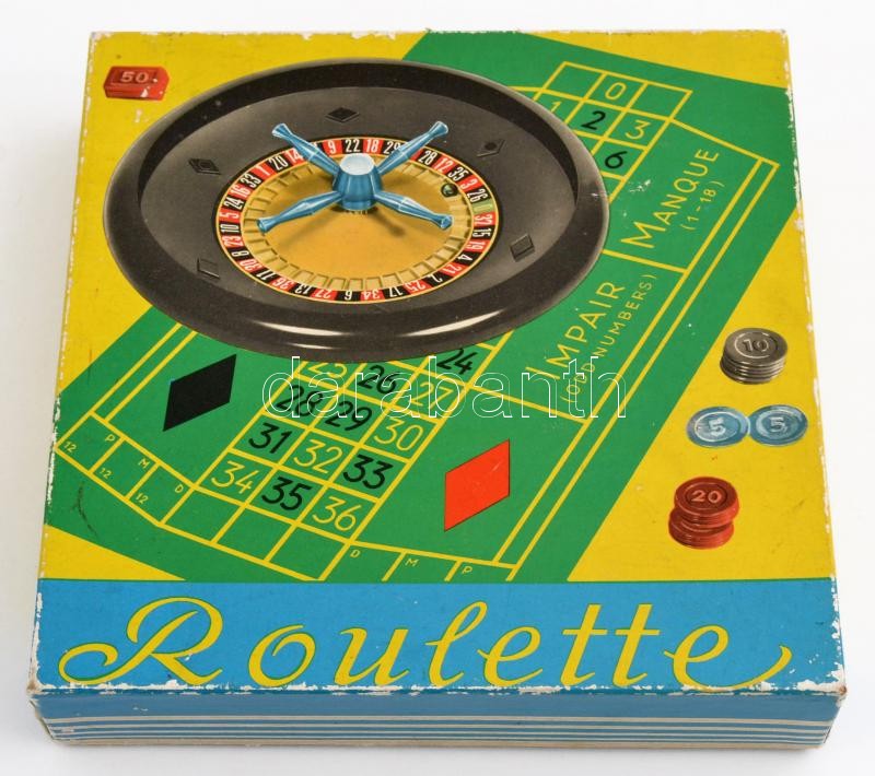 Retró komplett roulette játék, eredeti dobozában https://www.darabanth.com/de/347-Fernauktion/347.0/Kunst-Dokumente-andere-Sammelgebiete/Spielzeuge~500012/Retro-komplett-roulette-jatek-eredeti-dobozaban~II1973162