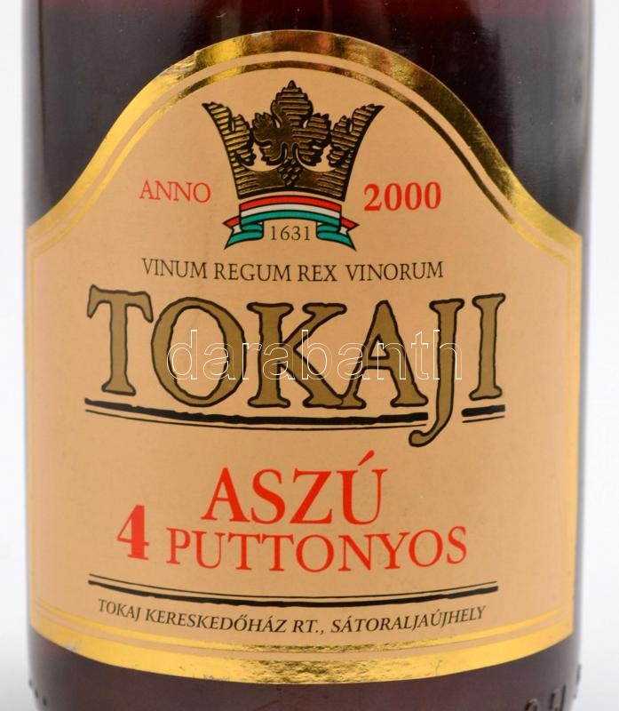 2000 4 puttonyos Tokaji aszú, 0,5 l. bontatlan palack, Tokaj Kereskedő... https://www.darabanth.com/de/347-Fernauktion/347.0/Kunst-Dokumente-andere-Sammelgebiete/Vintage-Weine-Getranke~500014/2000-4-puttonyos-Tokaji-aszu-0-5-l-bontatlan-palack-Tokaj-Kereskedohaz-RT-Tolcsva~II1971948