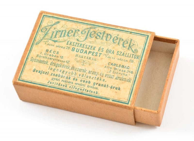 Beschreibung: Zirner Testvérek Ékszerészek és Óraszállítók papírdoboza, 7×10×3 cm