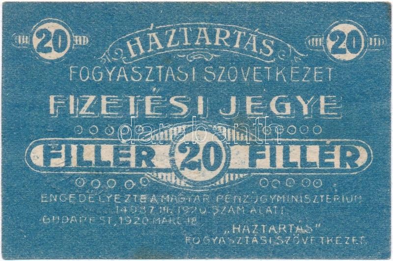 Beschreibung: 1920. "Háztartás Fogyasztási Szövetkezet" 20f T:III