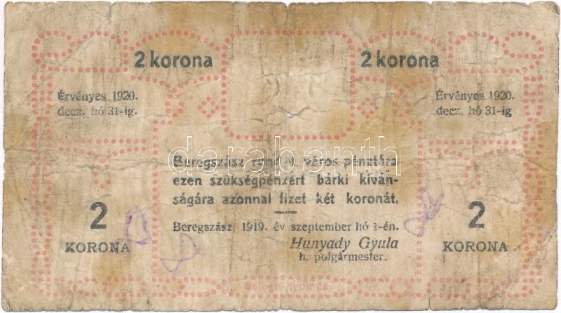 Beschreibung: Beregszász 1919. 2K szükségpénz T:III- Adamo BER-1.2