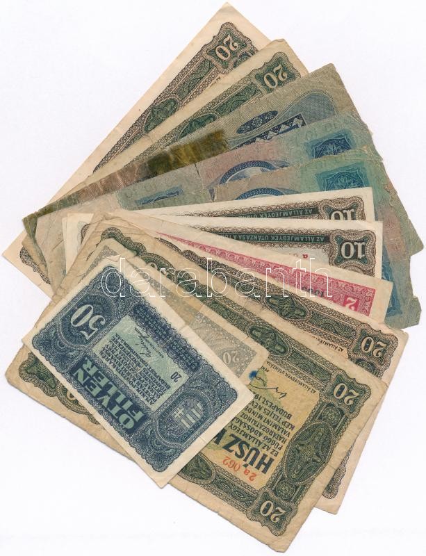 1913-1920. 12db-os vegyes magyar korona bankjegy tétel T:III-IV ragasz... https://www.darabanth.com/de/347-Fernauktion/347.0/Numismatik/Ungarische-Banknoten~1000006/1913-1920-12db-os-vegyes-magyar-korona-bankjegy-tetel-TIII-IV-ragasztott-ly~II1969812