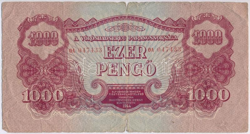 Beschreibung: 1944. 1000P "A Vörös Hadsereg Parancsnoksága" T:III- szakadás
