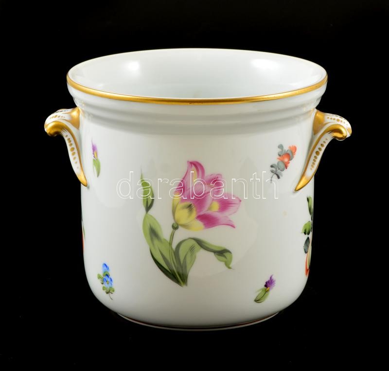 Beschreibung: Herendi Fruits mintájú kaspó, kézzel festett, jelzett, apró kopás nyomokkal, m:12,5 cm, d:13,5 cm